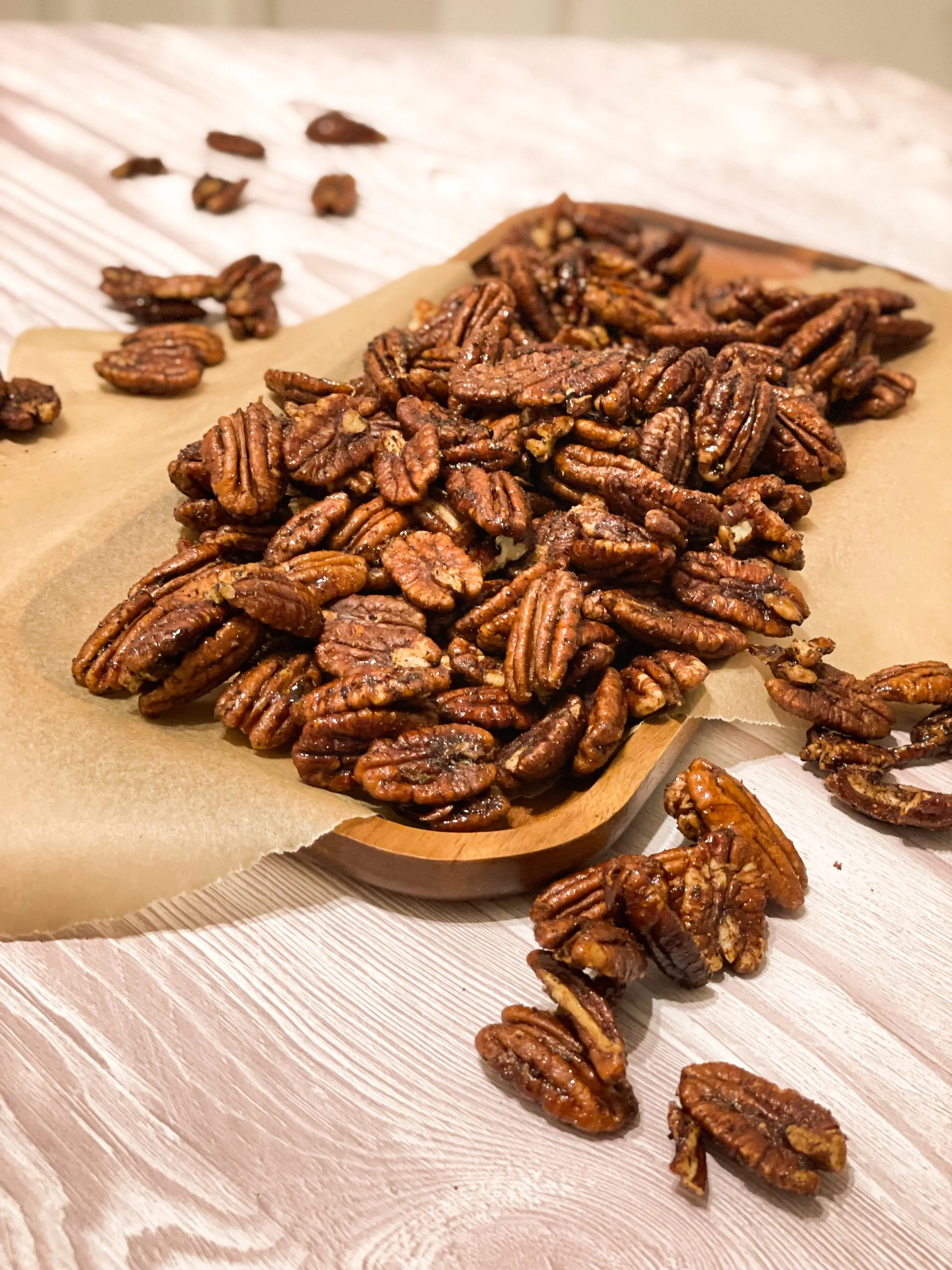 Maple Whiskey Candied Pecans (aka Bulliet Pecans)