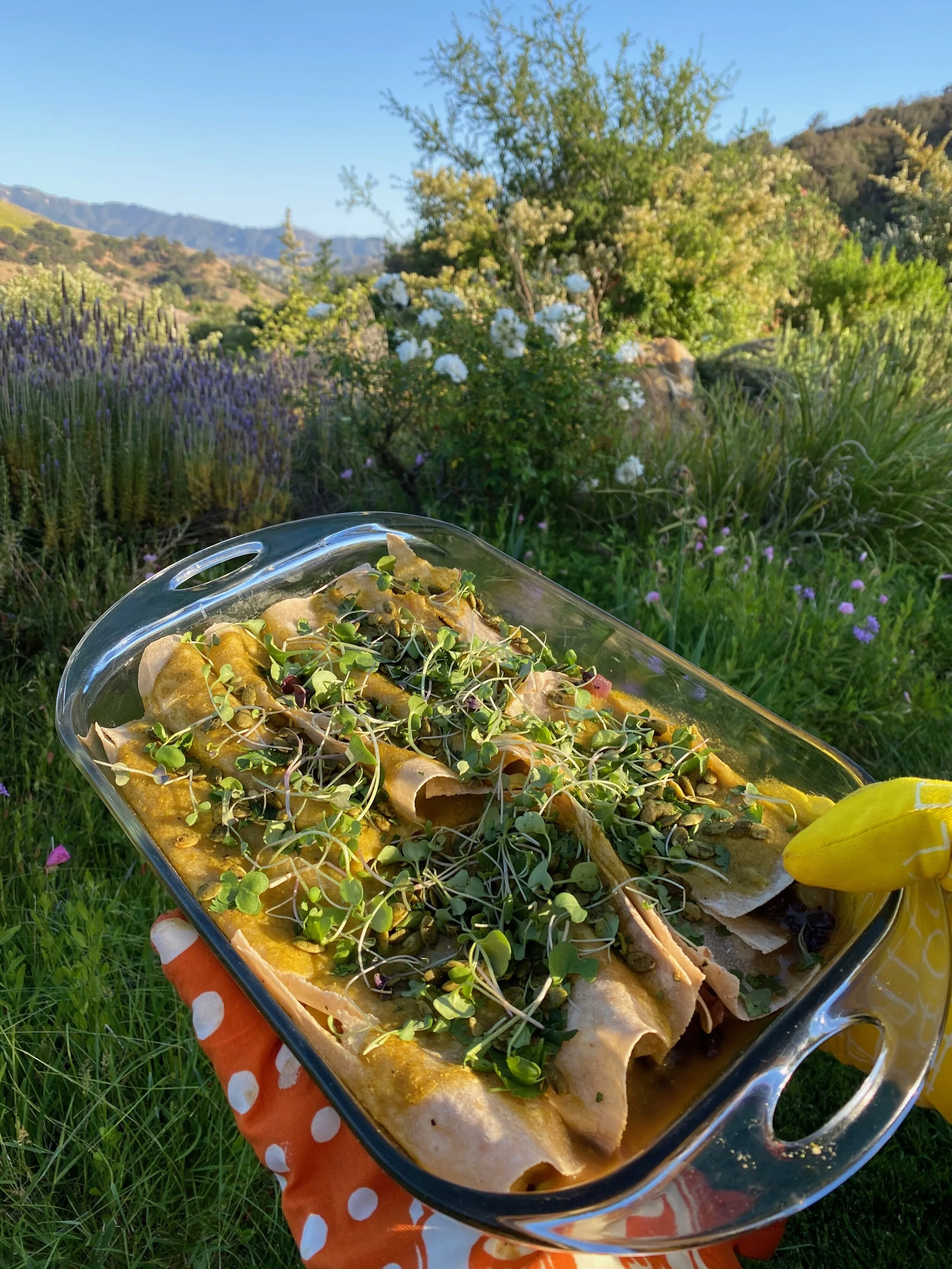 I created this dish on Cinco de Mayo this year for my clients. They loved how I was able to incorporate veggies into their enchiladas and make them dairy free! Enjoy with green or red enchiladas sauce!