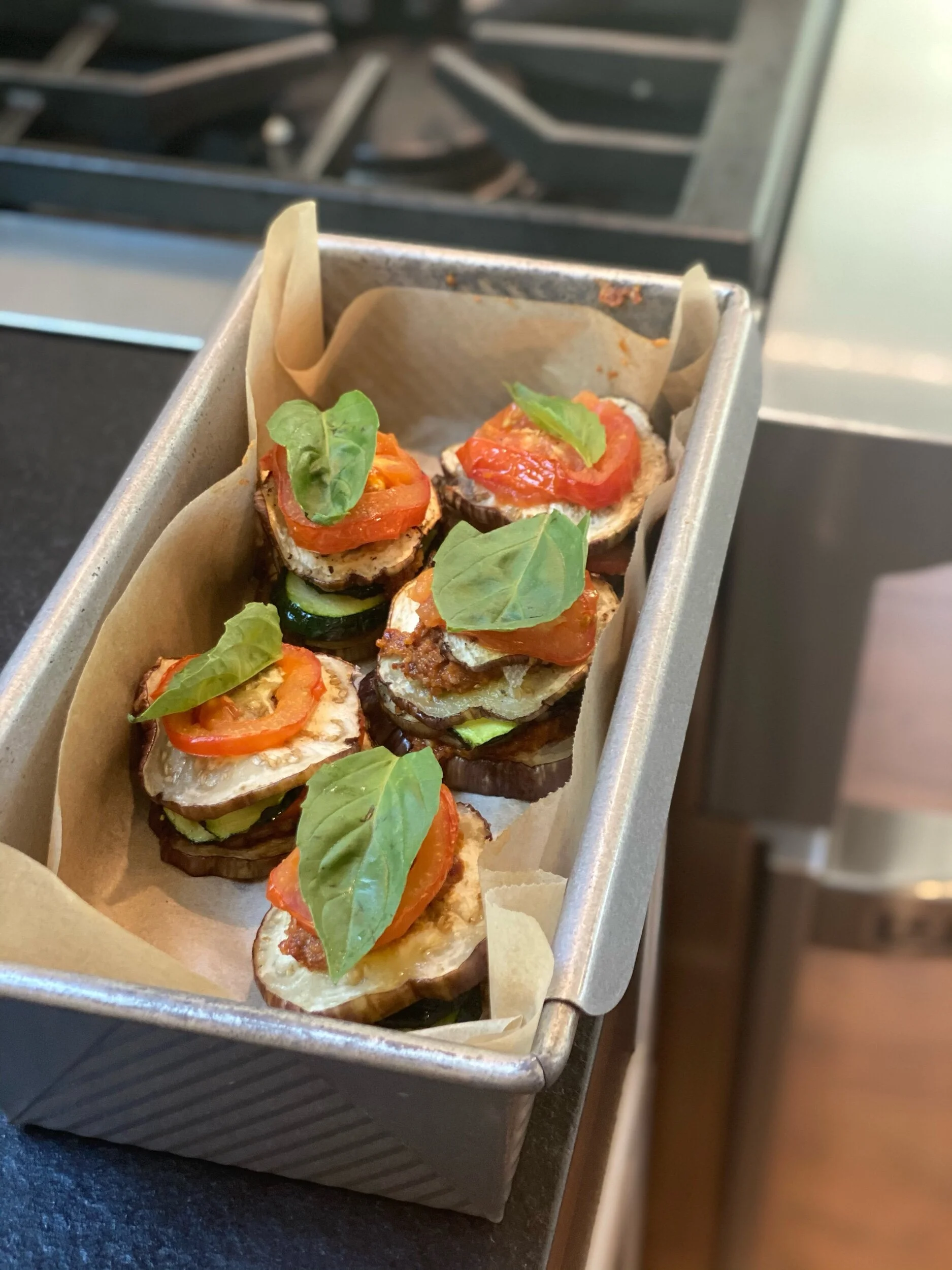 This is the perfect side or main dish for any Italian night! Try whatever vegetables you prefer in the stack. I absolutely love this pesto recipe, but the fun thing about this dish is you can do any type of sauce you would like in-between the vegetables. It all melds together and develops a delicious flavor. I love to add fresh basil on top at the herb to bring in the perfect freshness!
