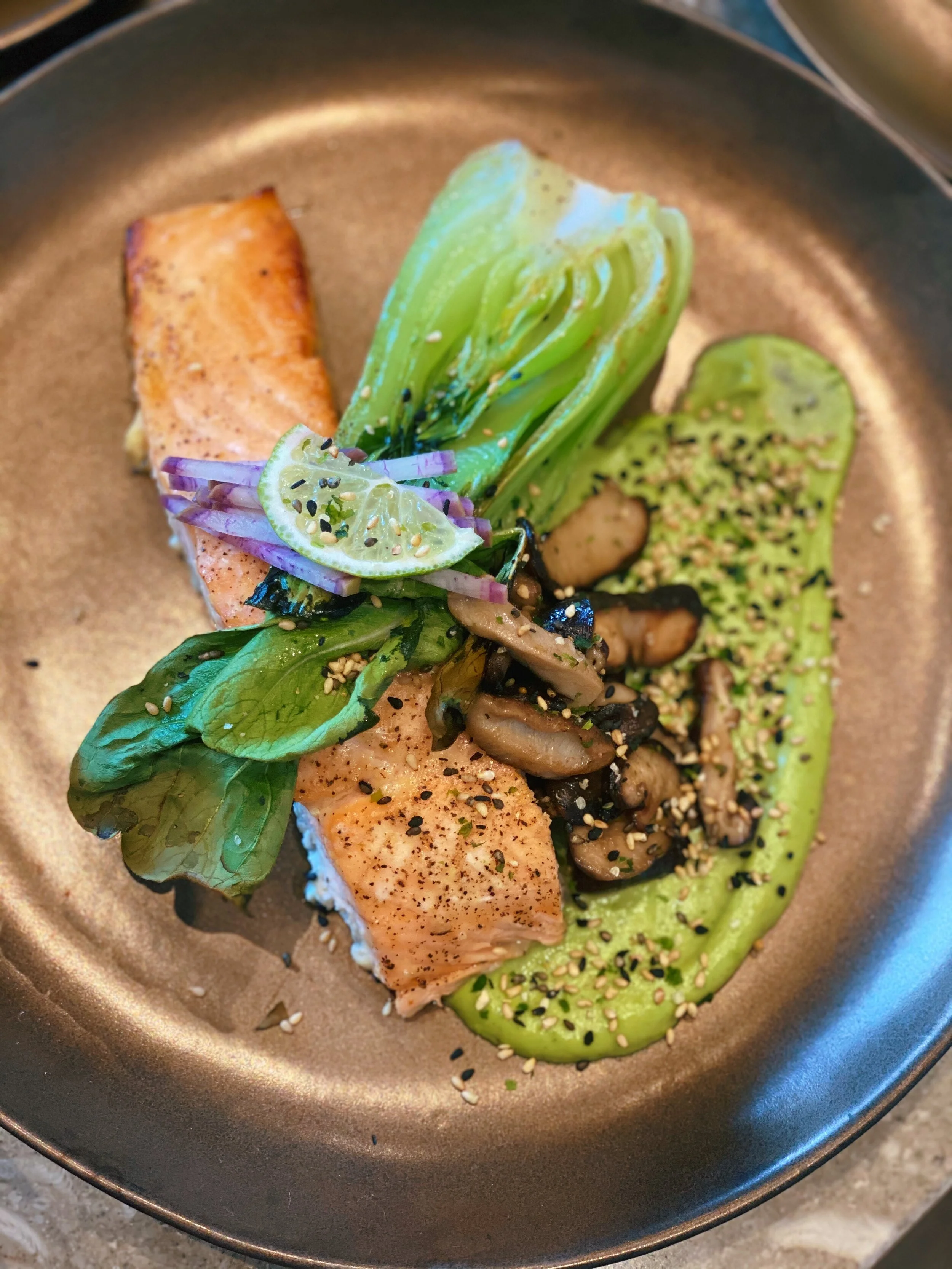 In this recipe I used a simple miso glaze that can be used on any protein, vegetable, or even as a sauce! The flavor of my delicious cilantro creama pairs perfectly with my decadent miso salmon and sesame ginger bok choy. I like to sear my bok choy on the outside so that it remains crunchy on the inside. Make this dish for any dinner guest and they will not be disappointed. It is easy to make and turns out delicious every time!