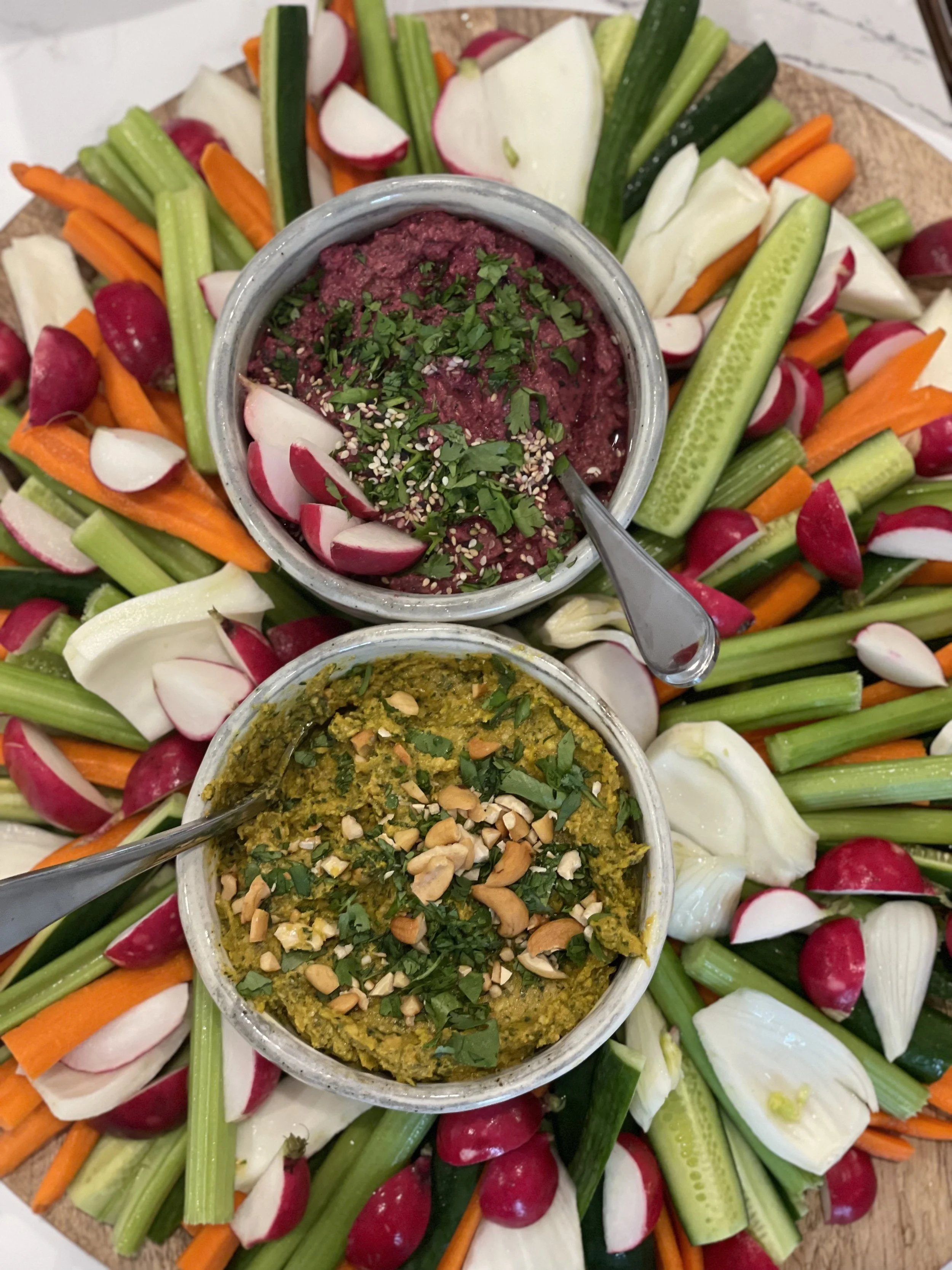 Serve with fresh veggies—carrots, cucumber, radish, bell pepper—or warm pita. Easy, vibrant, and full of flavor!